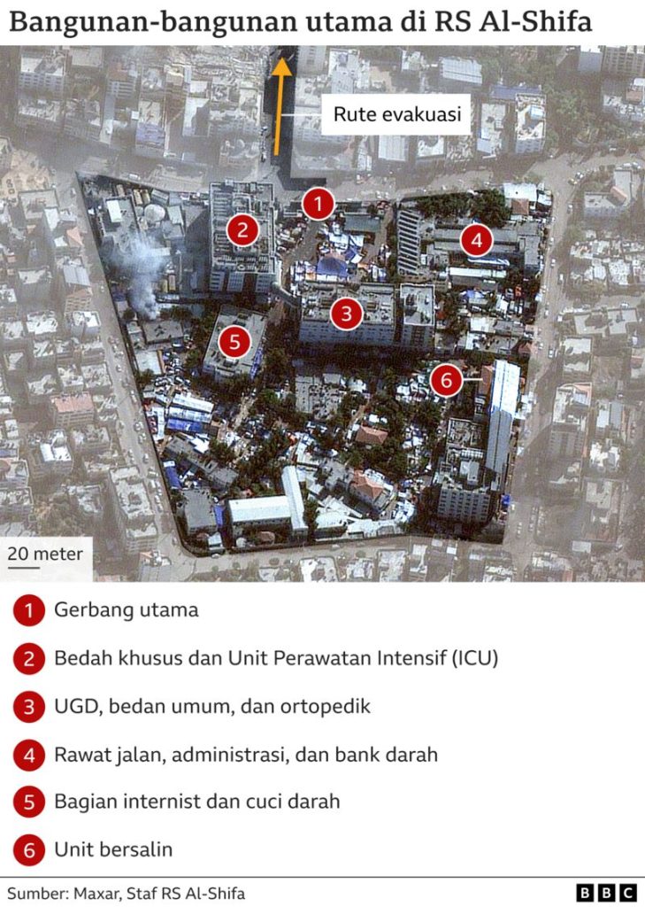 Meskipun Israel sebelumnya menyatakan siap mengizinkan staf dan pasien untuk dievakuasi, warga Palestina mengatakan pasukan Israel melepaskan tembakan ke arah mereka dan terlalu berbahaya untuk memindahkan pasien yang rentan.
